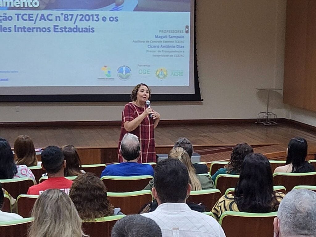 O curso, ministrado pela auditora de Controle Externo do TCE/AC, Magali Sampaio, e pelo diretor de Transparência e Integridade da Controladoria-Geral do Estado (CGE/AC), Cícero Antônio Dias, teve como objetivo aprimorar as habilidades e conhecimentos dos gestores na área de controle interno, contribuindo para a efetividade da gestão pública e a prevenção de irregularidades.